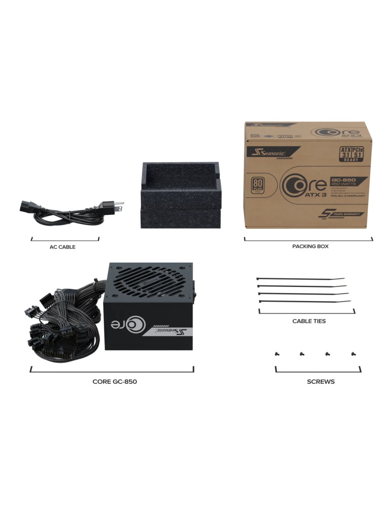Захранване Seasonic CORE GC-850 PSU ATX 3.1 850W Gold, PCIe 5.1 - SRP-CGC851-A5A32SF