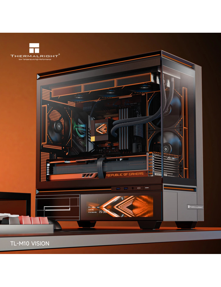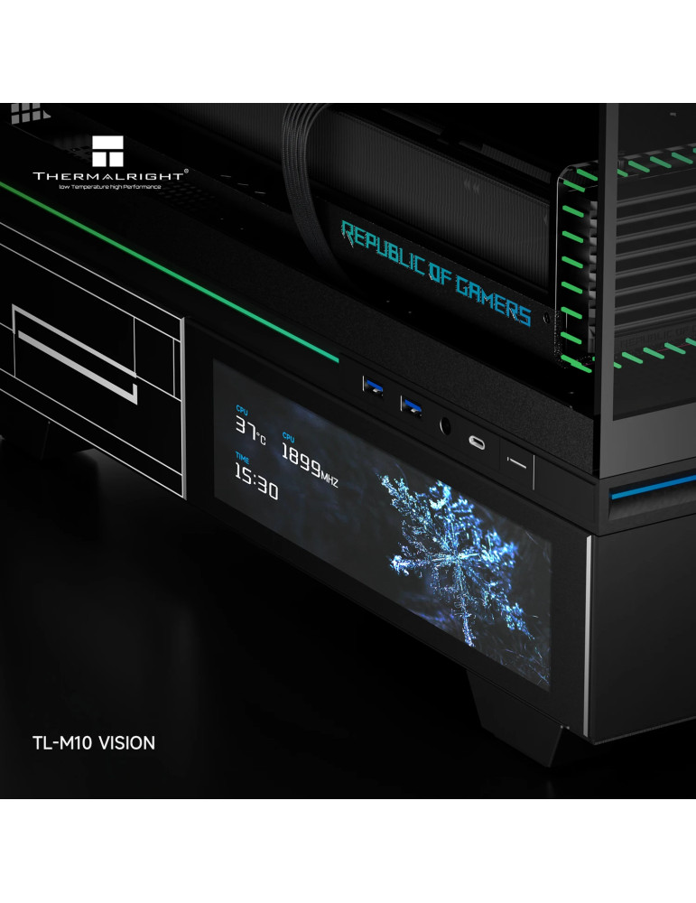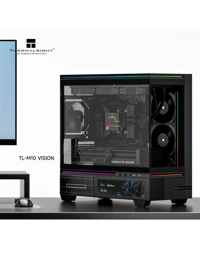 Кутия за компютър Thermalright TL-M10 Vision Black, 4бр ARGB 120mm вентилатори, 9.16 inch LCD Display, USB-C, mATX - TL-M10-VISION-BK-FAN4-M