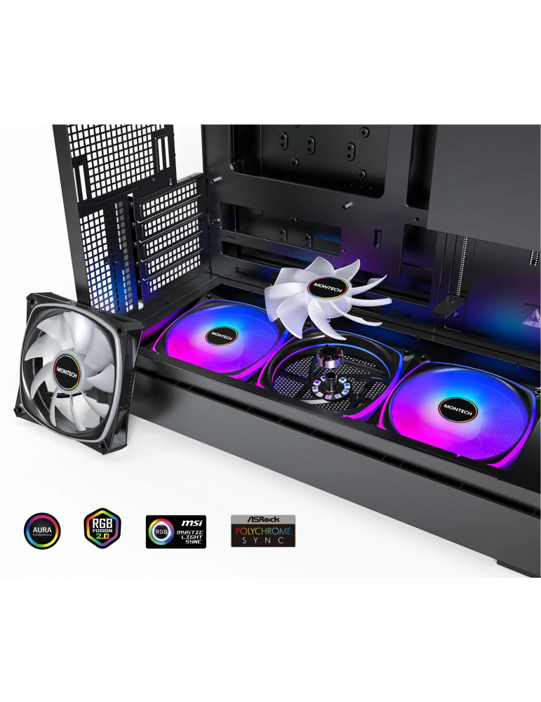 Кутия за компютър Montech KING 15 PRO (B), 4бр ARGB 120mm вентилатори, USB-C, mATX - MONTECH-KING-15-PRO-B