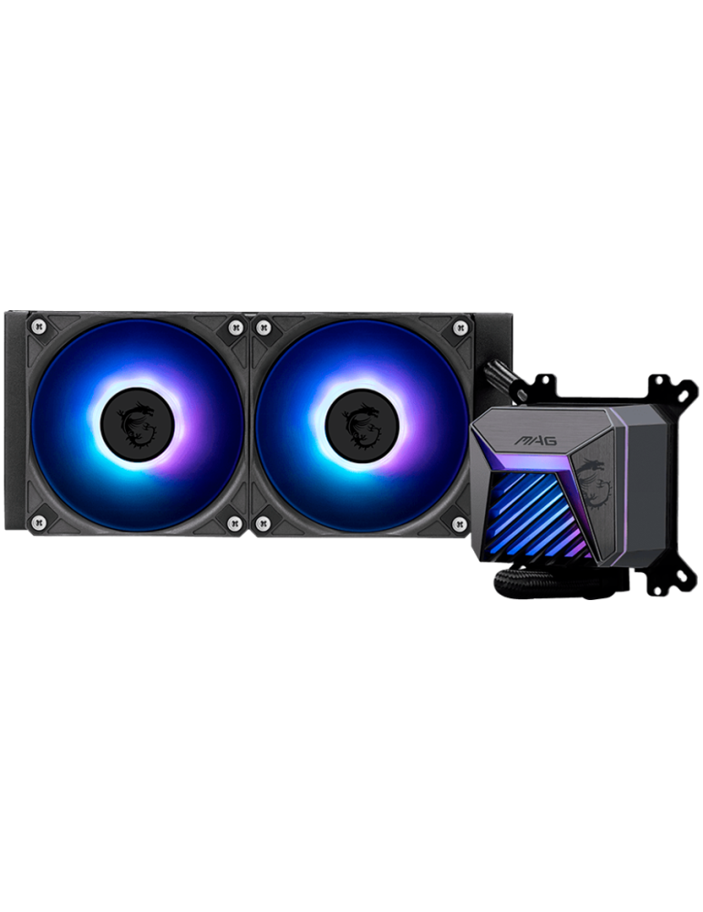 Водно охлаждане за процесор MSI MAG CORELIQUID A15 240, 2x120mm Pre-installed ARGB Daisy Chain Fans, Adjustable Offset Kit, Replacable Top Cover, Copper Base Intel LGA 1700/1851, AMD AM5/AM4