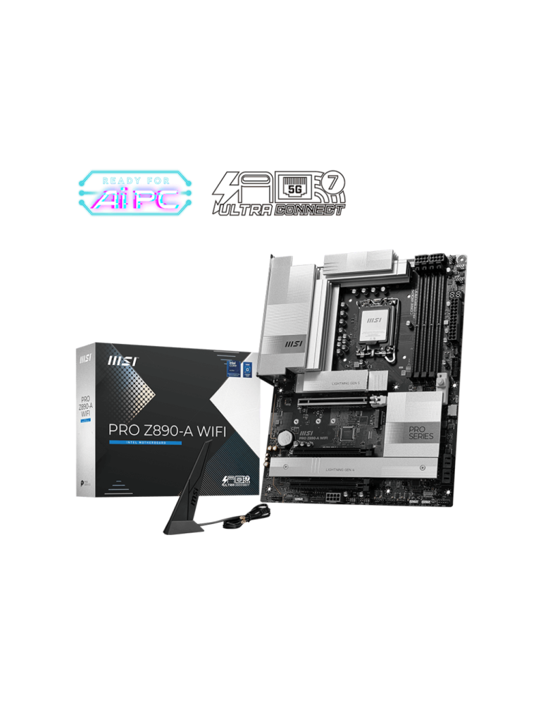 MSI PRO Z890-A WIFI дънната платка с LGA1851 сокет ви позиционира в началото на новата Intel платформа, което означава дългосрочна поддръжка и възможност за upgrade към бъдещи Arrow Lake Refresh процесори. Четирите DDR5 слота позволяват разширение до 192GB RAM, а множеството M.2 слотове (включително Gen5) осигуряват място за допълнително NVMe съхранение.