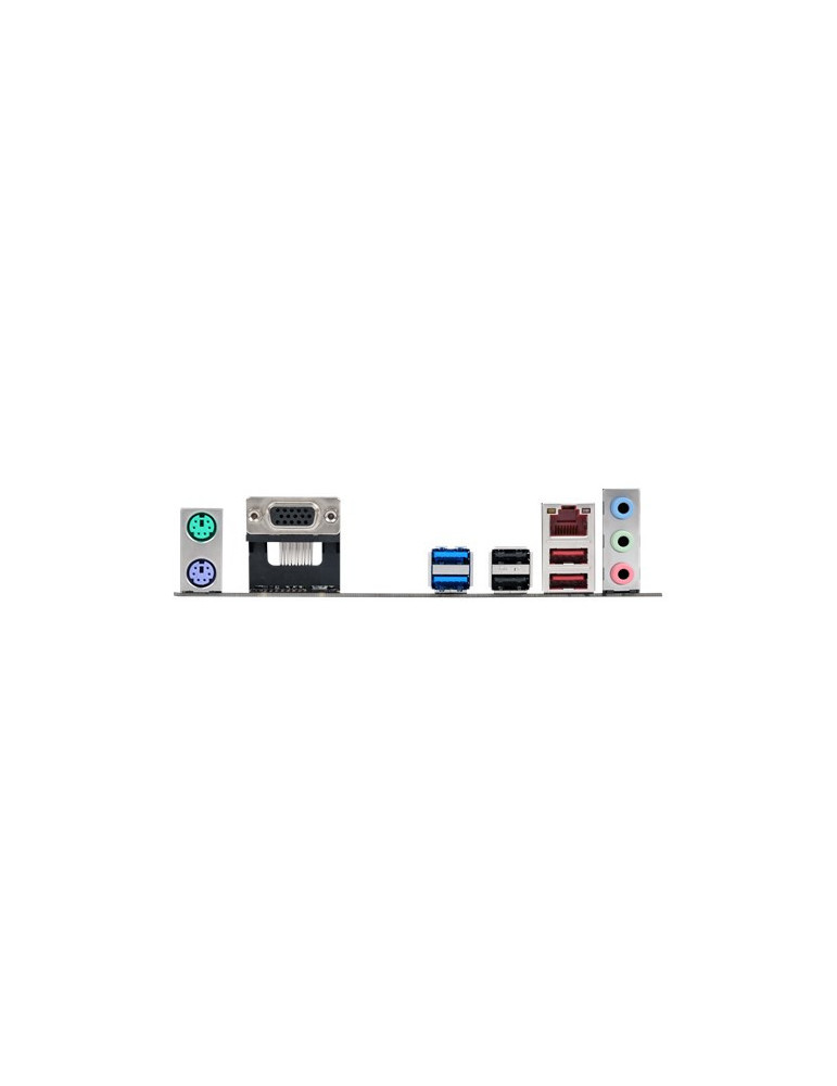 | I/O | 1 x PS/2 keyboard (purple); 1 x PS/2 mouse (green); 1 x D-Sub; 1 x LAN (RJ45) port(s); 2 x USB 3.0 (blue) ; 4 x USB 2.0 ; 3 x Audio jack(s). |