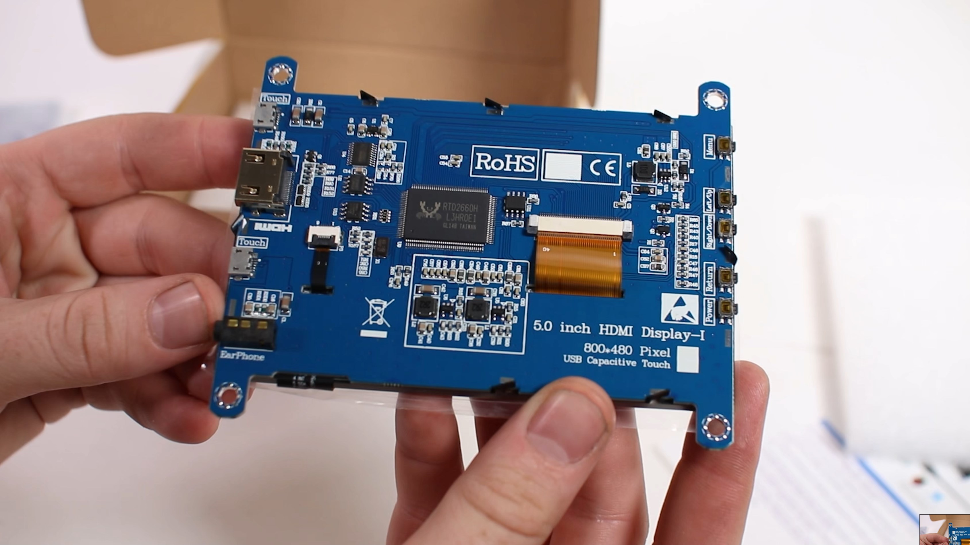На първо място ни трябва самият дисплей. Откъде можем да се сдобием с подходящо малко като размери дисплейче и как да го свържем с компютъра. Има няколко варианта, този, на който се спрях аз, е пет инчов дисплей, предназначен за Разбери Пай или намиращ приложение в други устройства. На сайта на Йон Компютърс този дисплей може да се намери на цена от около 90лв. Имайте предвид, че тъй като по принцип търсенето на такива части е доста ограничено, сроковете за доставка са малко по-дълги, а цената е възможно да варира в известни граници.
