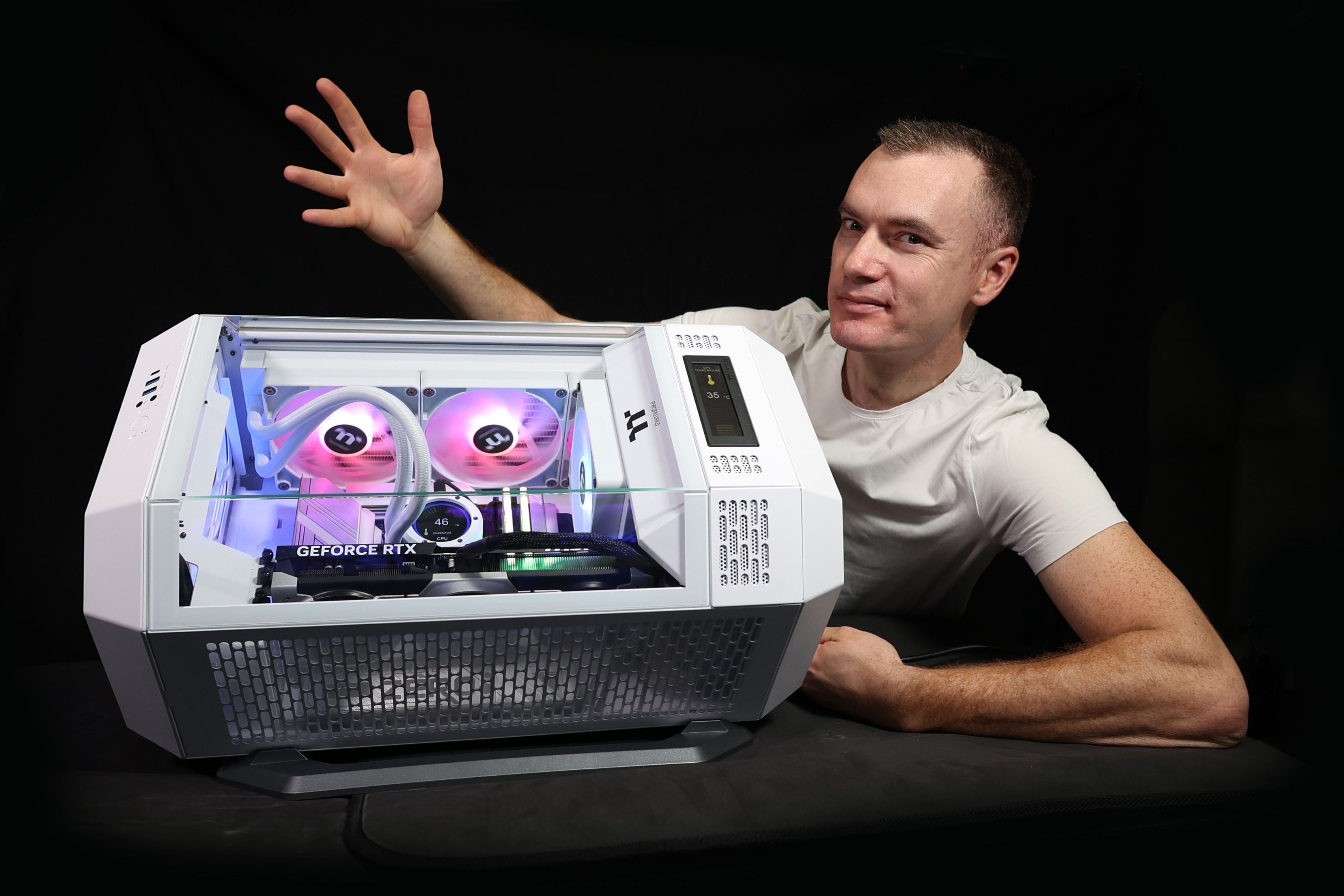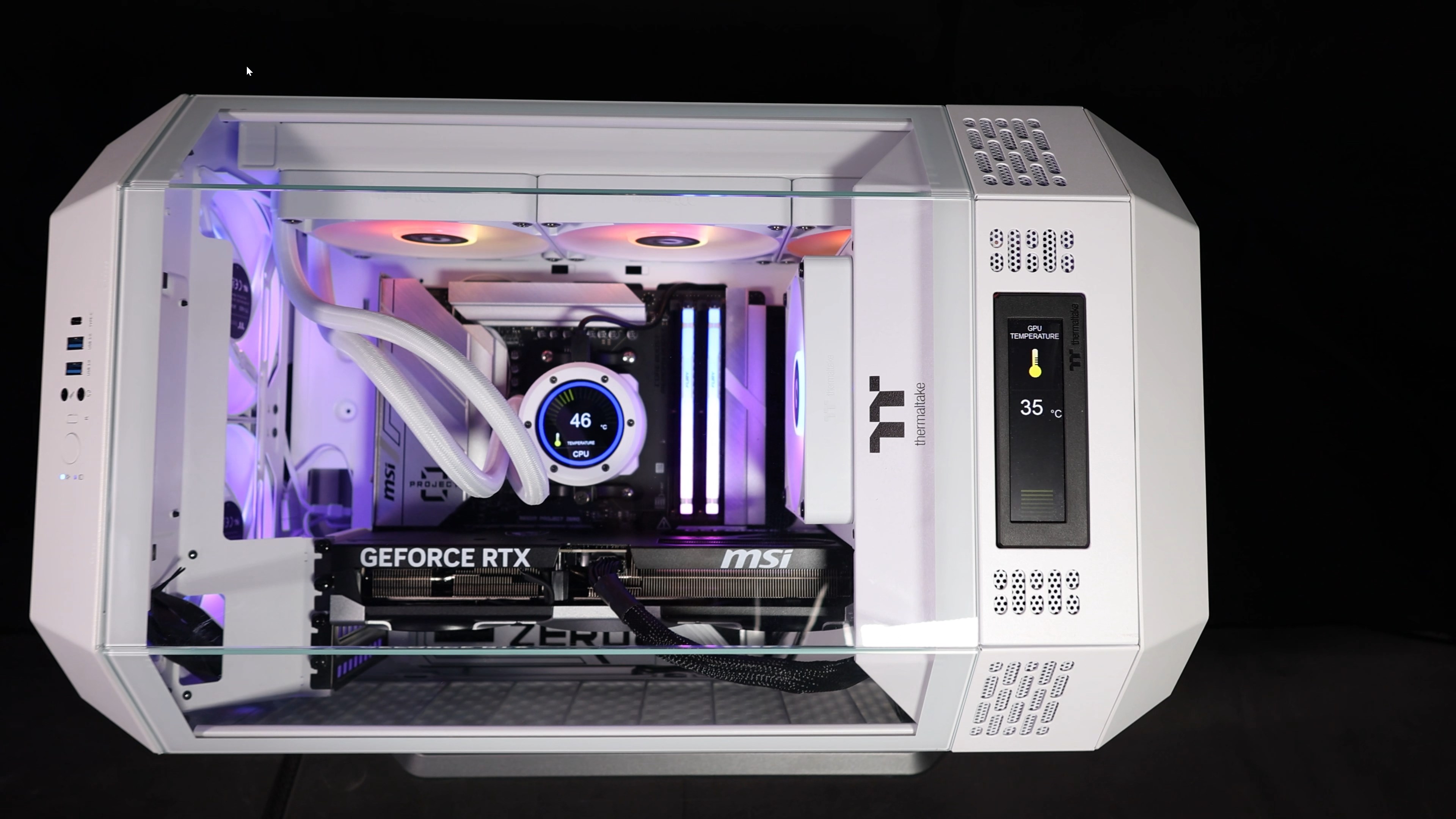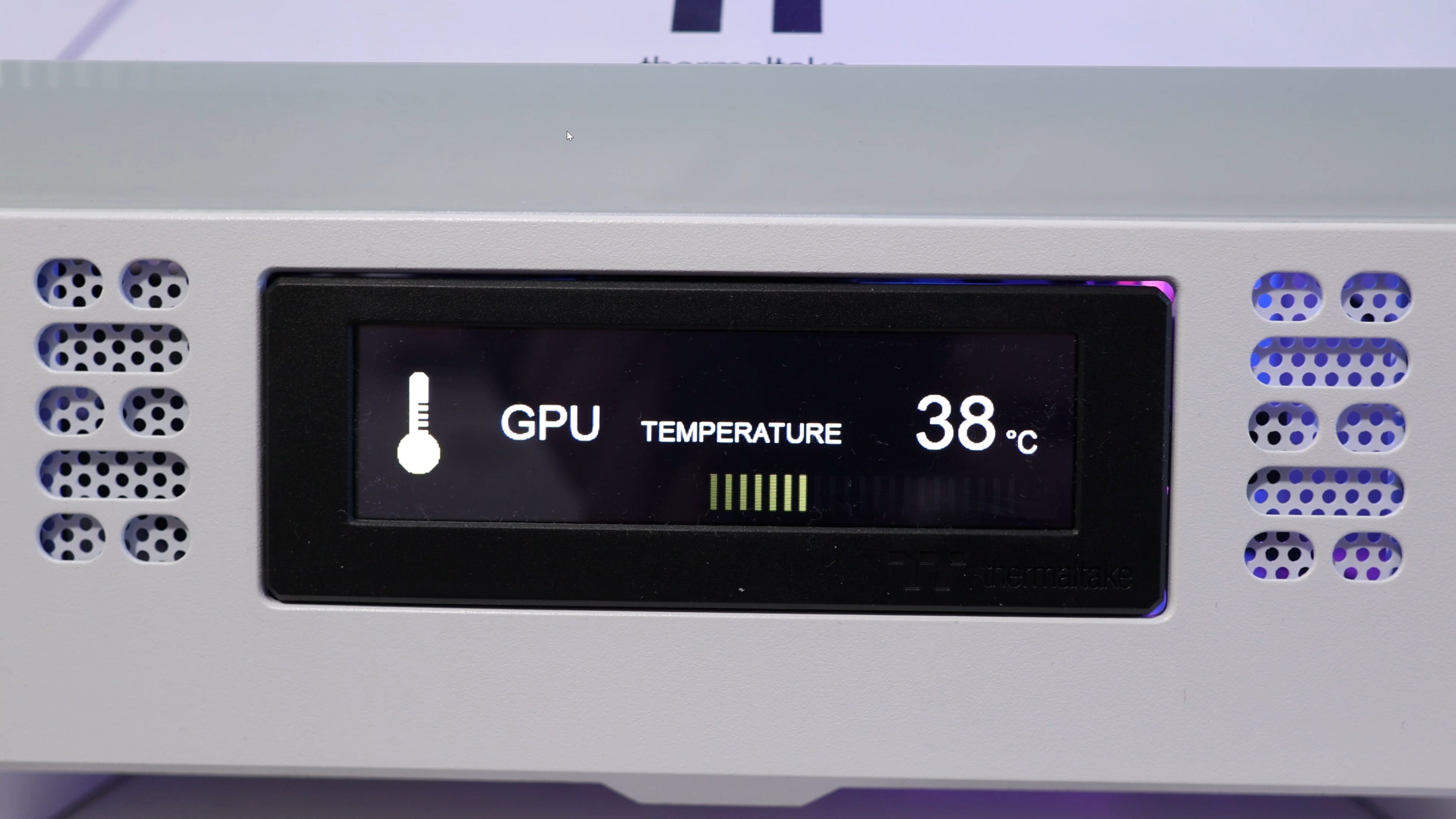 Нещо, което може би прави веднага впечатление, когато видите компютъра, това са двата дисплея, показващи температурата на процесора и тази на видео картата.