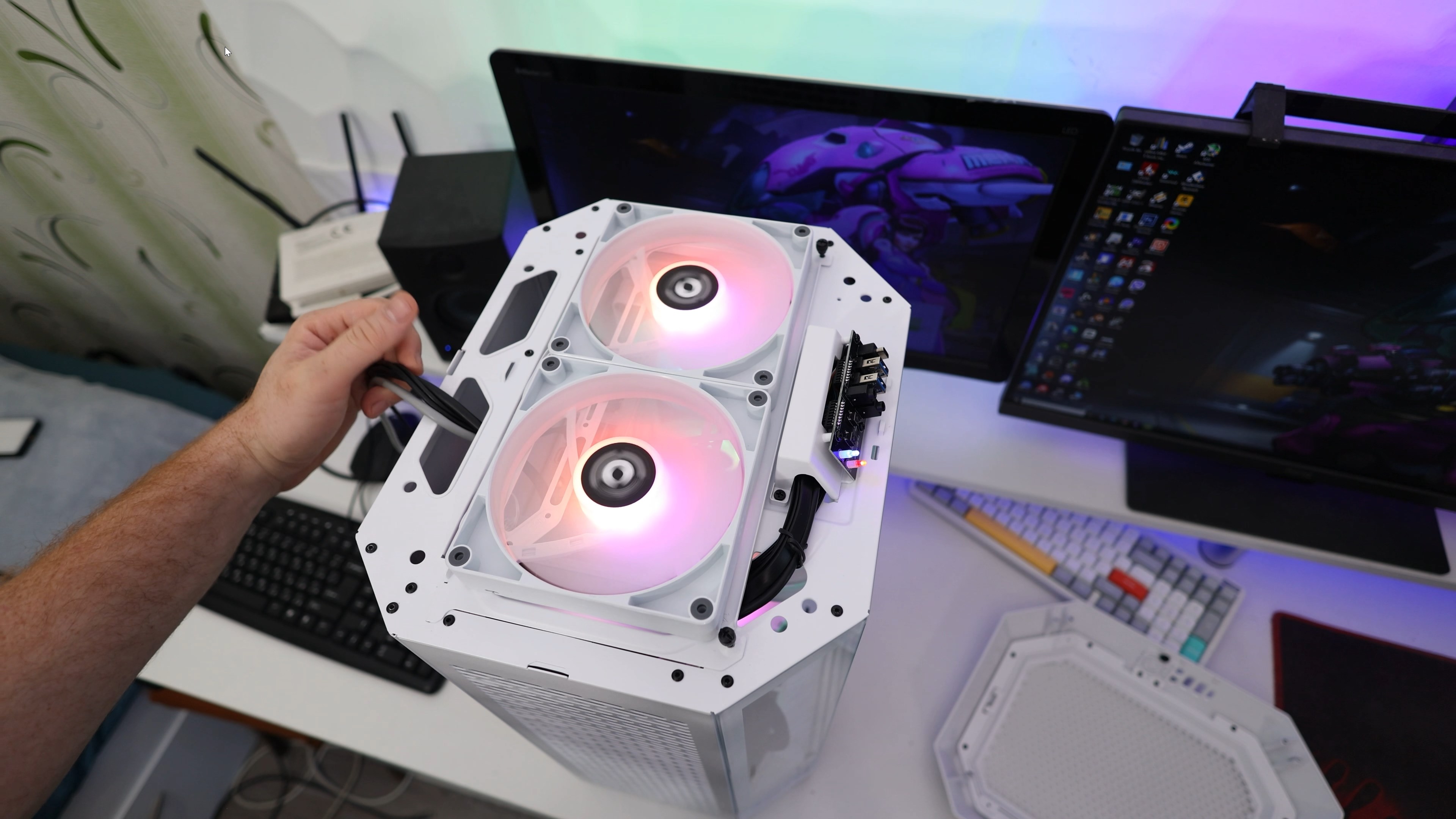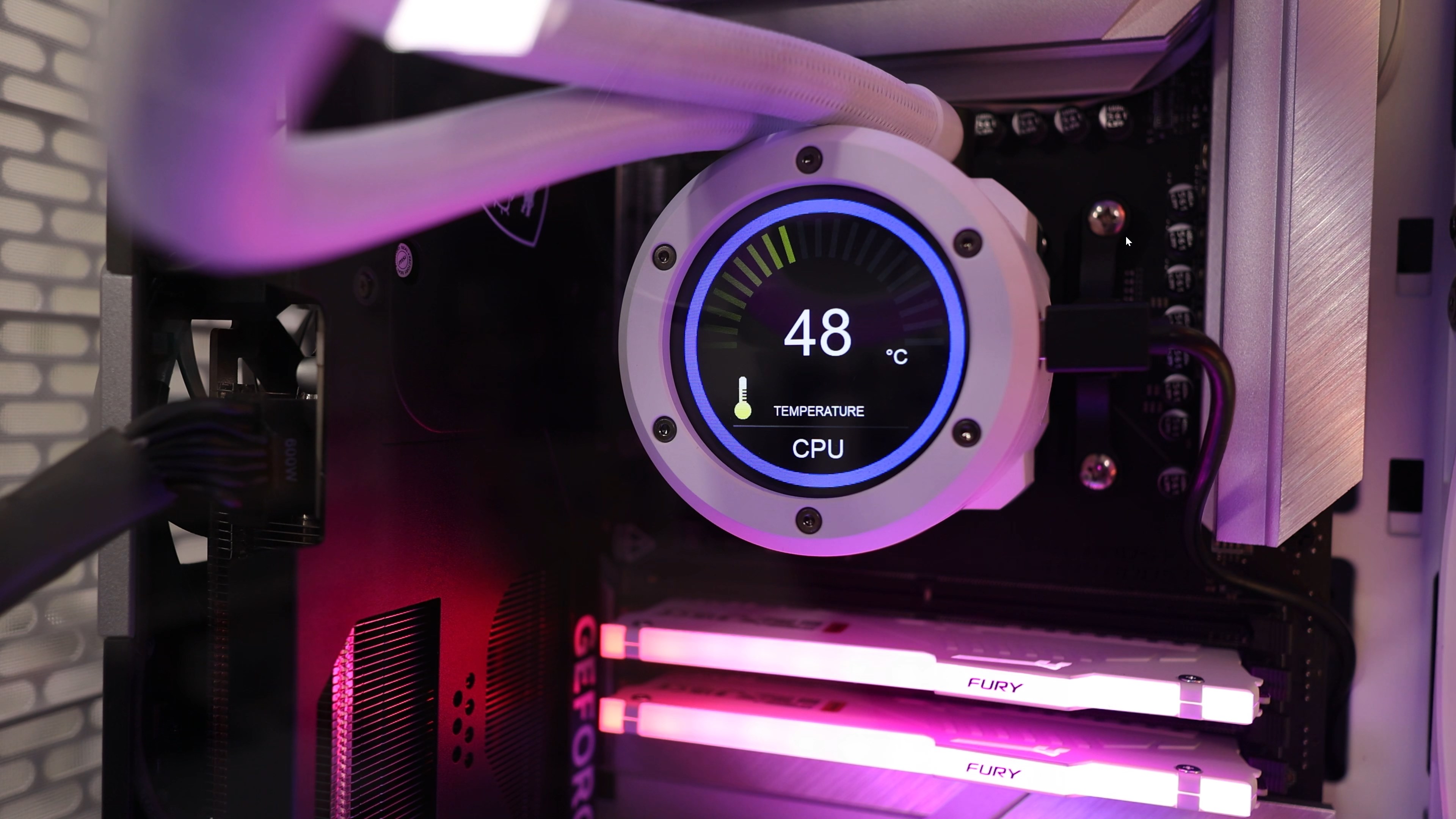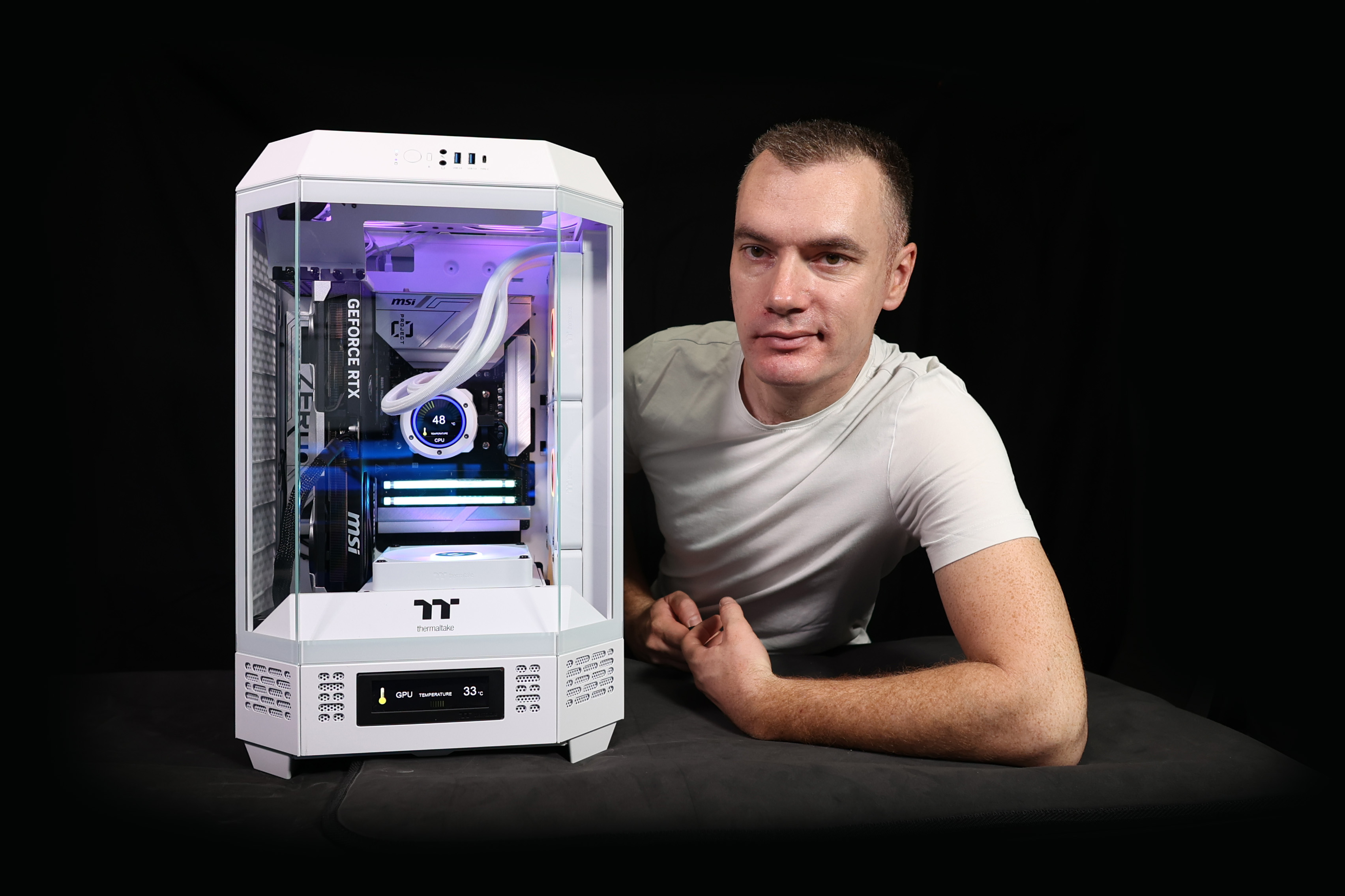 Нещо, което може би прави веднага впечатление, когато видите компютъра, това са двата дисплея, показващи температурата на процесора и тази на видео картата.