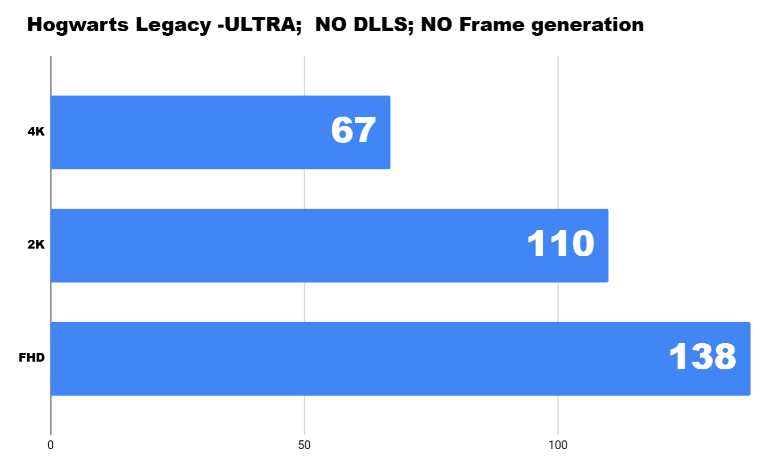 Нека започнем с може би най-новото и най-тежкото заглавие в списъка – това е Hogwarts Legacy. Една игра с наистина впечатляваща графика. Използвам локацията на селцето Хогсмийд за бенчмарк. Тествам на Ultra настройки с изключен DLSS и Frame generation на трите резолюции – 4K, 2K и Full HD.