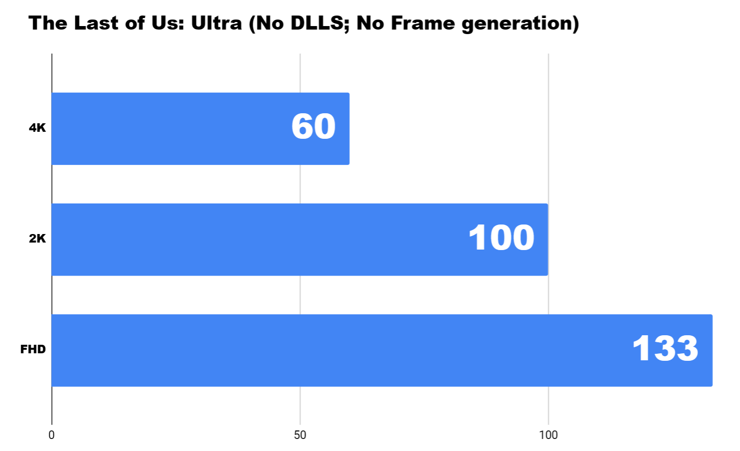 Следващото трипъл-А заглавие, което не е толкова ново, но е дори още по-тежко, е The Last of Us. Тук на 4K Ultra постигнахме едва 60 средни кадъра, на 2K имаме точно 100, а на Full HD отиваме над 130.
